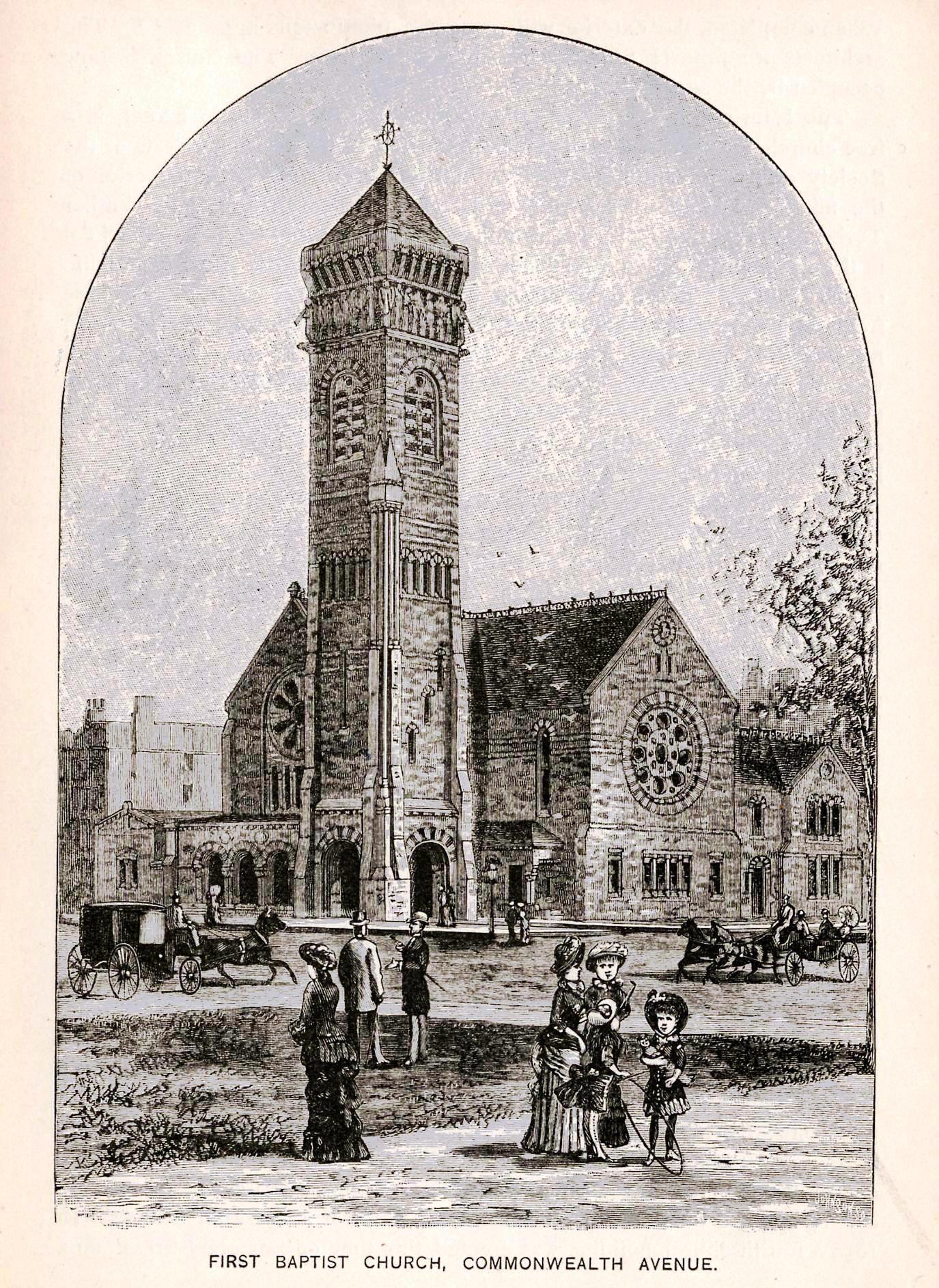 On October 25, 1881, the Boston Evening Transcript reported that Rev. G. C. Lorimer of Chicago would preach on October at the Brattle Square Church, commenting that the “acoustic properties of the church will be tested, and it is hoped that the services may lead to the purchase of the church by the Baptists.” On December 22, 1881, the Boston Post reported that the “First Baptist church on Shawmut avenue is discussing the purchase of the Brattle Street church edifice on Commonwealth avenue.” On January 4, 1882, the Boston Globe reported that the church had decided to purchase the building, subject to “certain conditions,” including “that the residents of the Back Bay shall subscribe from $40,000 to $50,000 towards the $90,000 for which the Brattle Square Church can be purchased, and this, it is believed, they will readily do.”