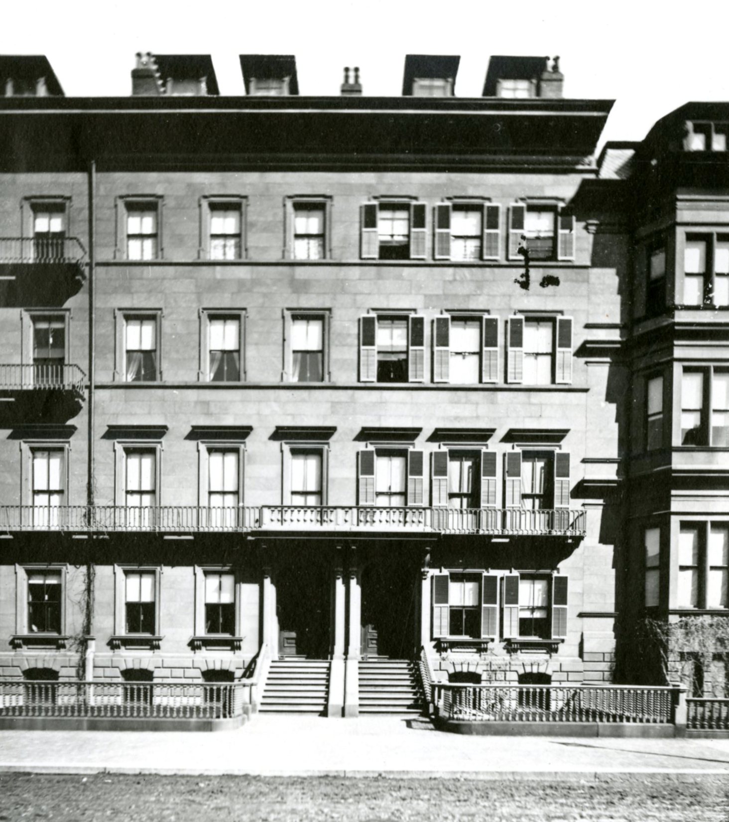 104 Beacon was built as the home of Edmund Dwight and his wife, Ellen Randolph (Coolidge) Dwight. They previously had lived at 68 Beacon. He was a dry goods merchant in the firm of Charles H. Mills & Company. Charles Henry Mills was his brother-in-law, the husband of Anna Cabot Lowell (Dwight) Mills.