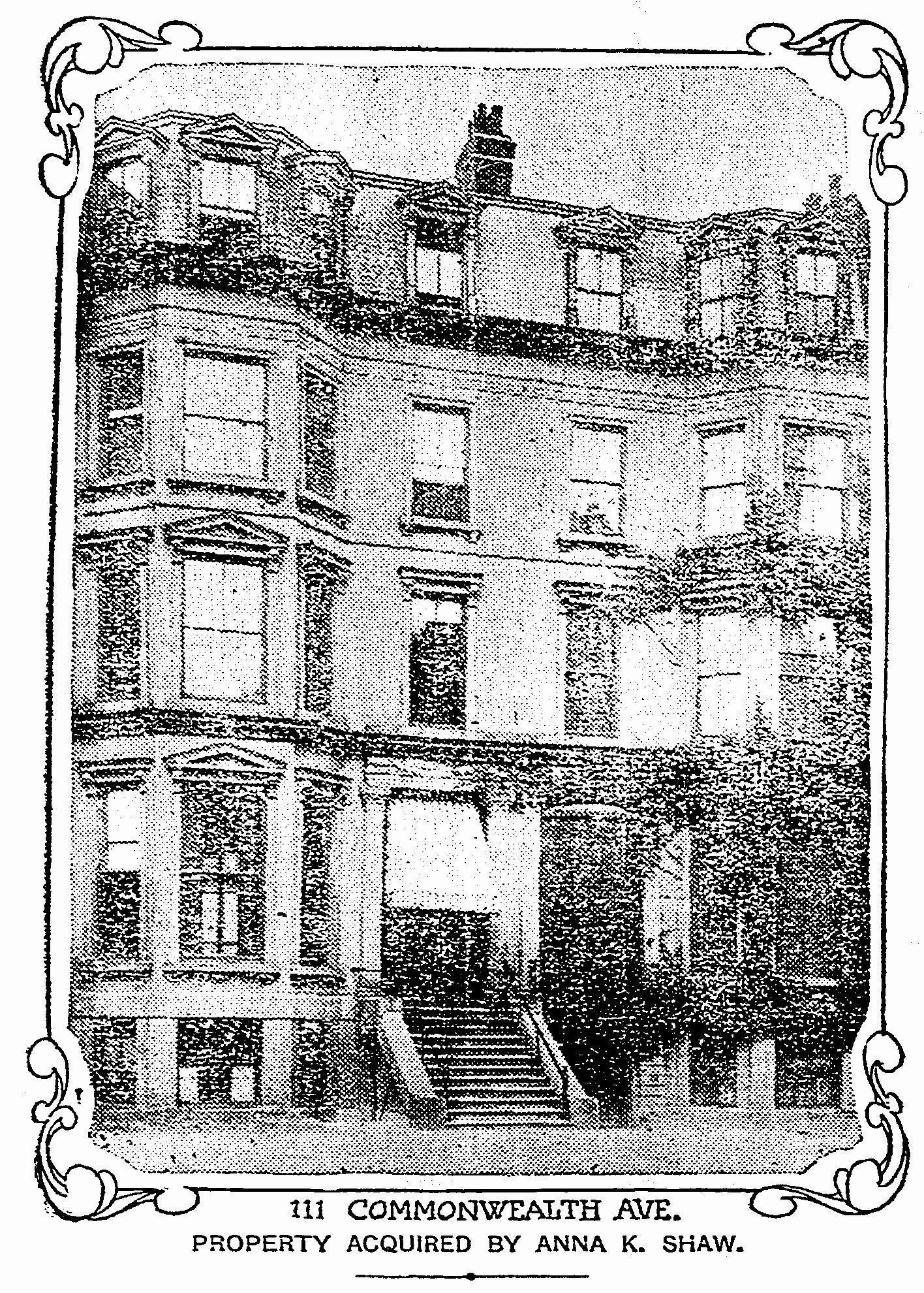 Anna Shaw continued to live at 111 Commonwealth until her death in March of 1907. According to her March 18, 1907, obituary in the Boston Evening Transcript, “she had been an invalid for many years.”