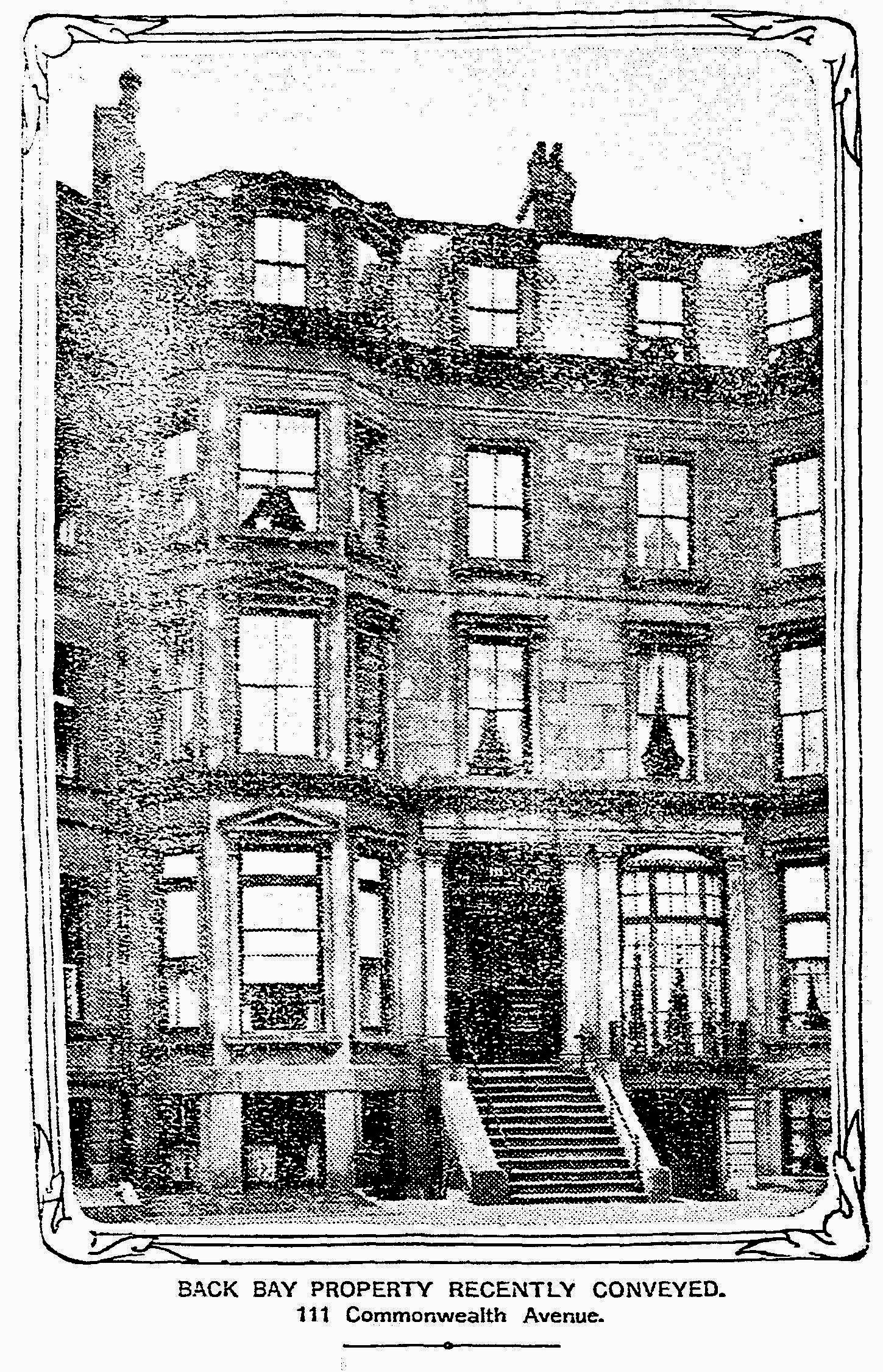 On March 25, 1905, 111 Commonwealth was acquired from Anna Shaw by her sister, Clémence (Haggerty) Crafts, the wife of professor and MIT President James Mason Crafts. They lived at 59 Marlborough.