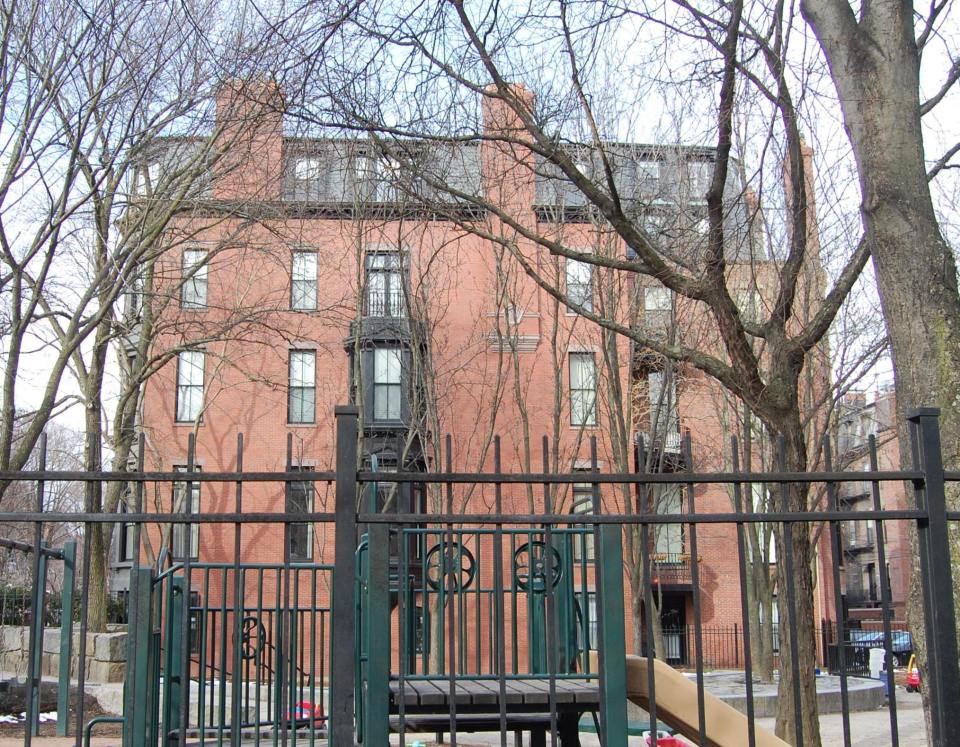 Comm 109 (2013-03) 2a ← Previous Next → 109 Commonwealth, eastern façade from Clarendon Street Playground (2013)