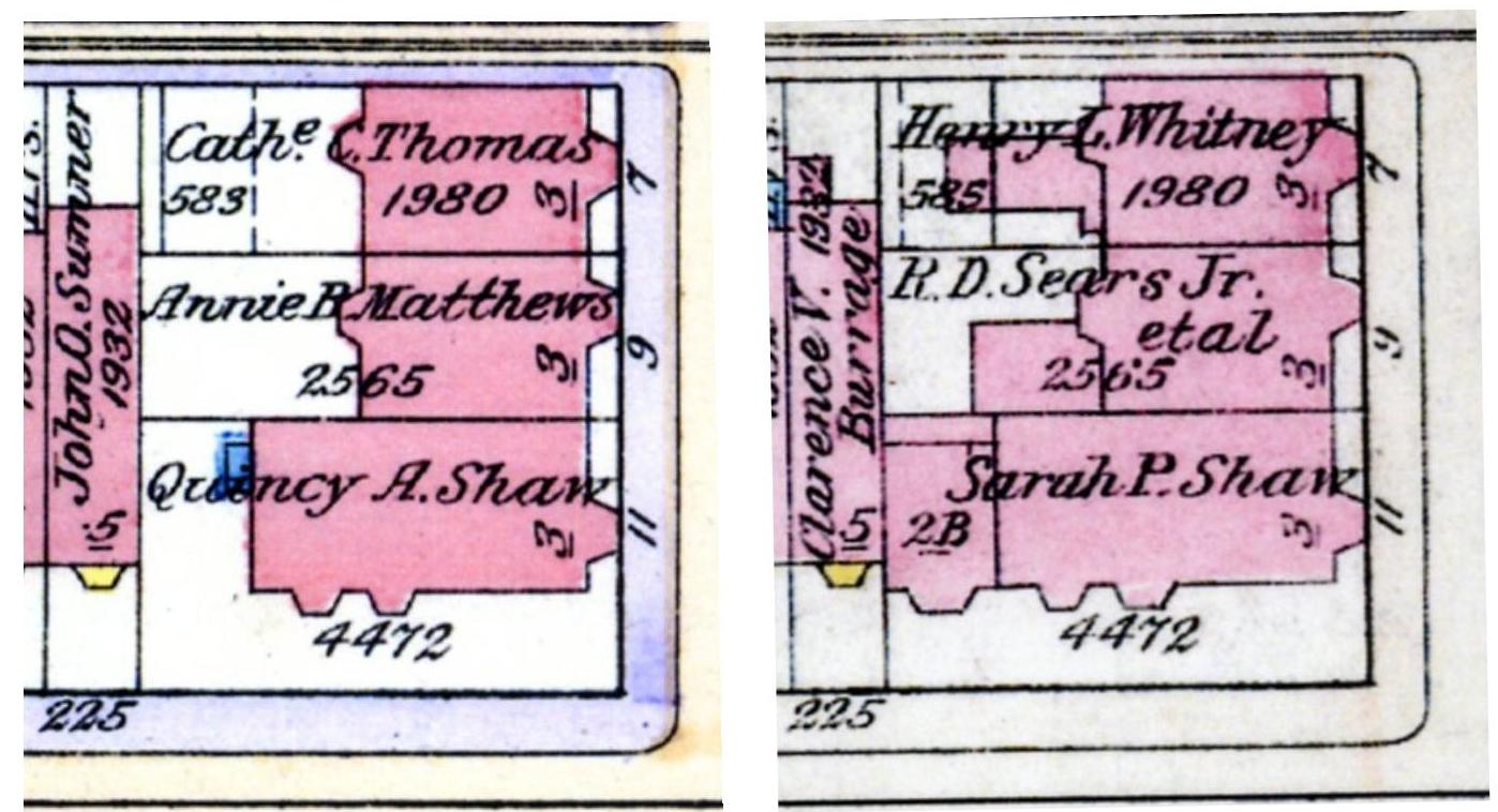 Sarah Shaw and Annie Pemberton lived at 253 Newbury during the remodeling, and then resumed living at 11 Exeter. Quincy Shaw rejoined them in the mid- to late 1920s.