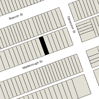 113 Marlborough is located on the north side of Marlborough, between Clarendon and Dartmouth, with 111 Marlborough to the east and 115 Marlborough to the west.