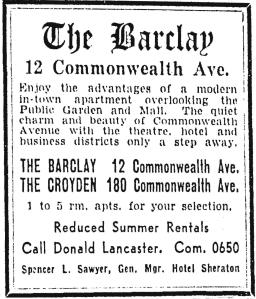 By the late 1930s, 12 Commonwealth included 61 apartments and was known as “The Barclay.”