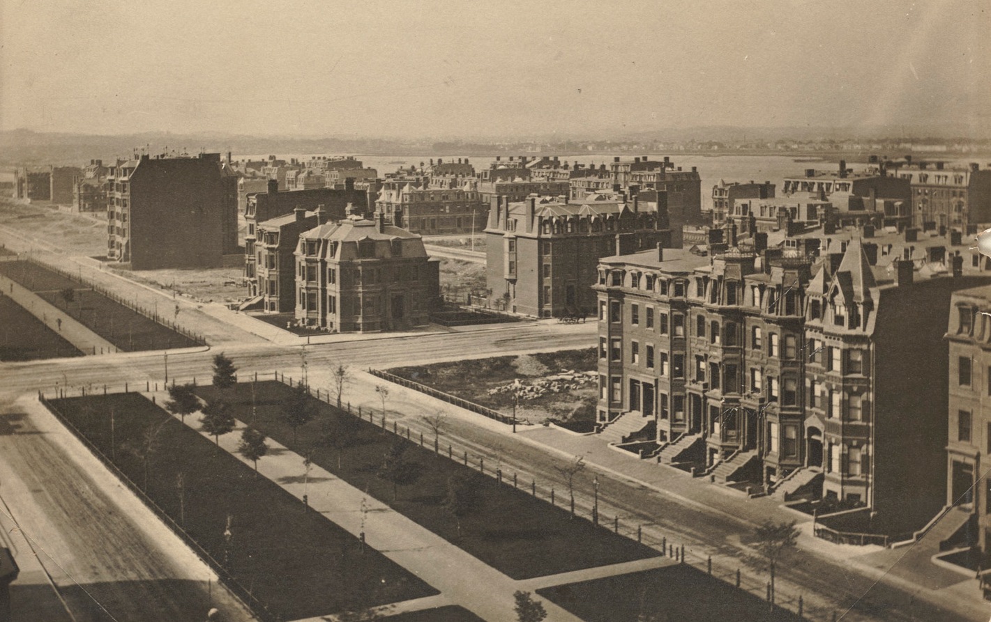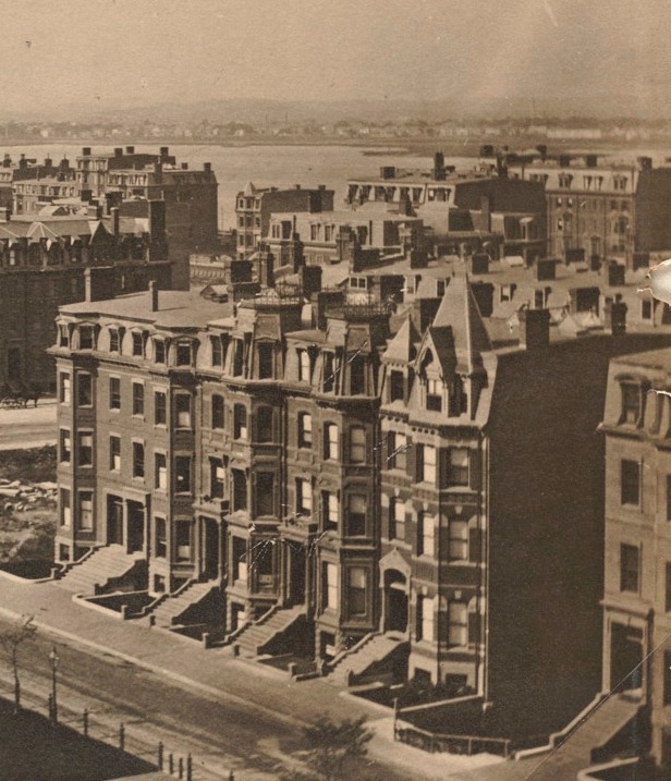 121-129 Commonwealth (ca. 1875), detail from photograph taken from the Brattle Street (First Baptist) Church tower; courtesy of the Print Department, Boston Public Library
