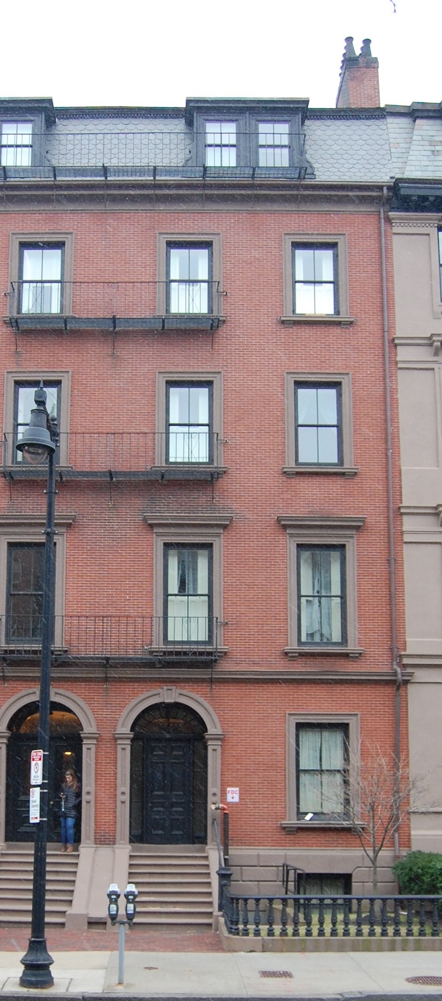 In July of 1938, Edmund Codman applied for (and subsequently received) permission to convert the house from a single-family dwelling into a lodging house. On the same day, Laura Davies filed to convert 139 Beacon into a lodging house. They each also filed to erect fire balconies between the two houses.