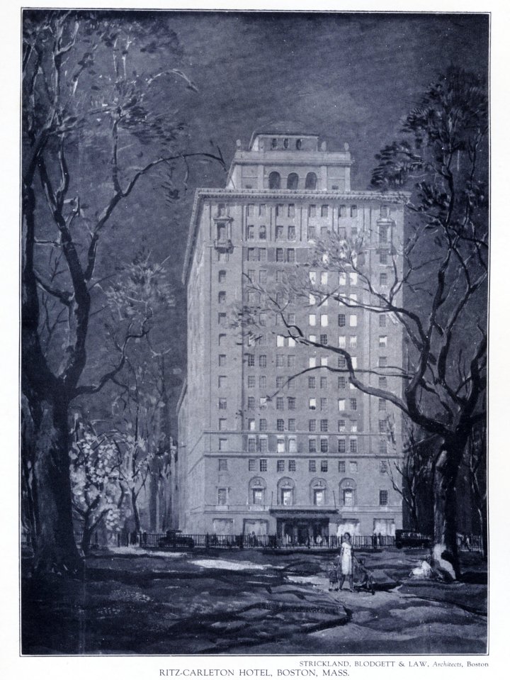 Arli 015 – ANEA&E – Image A ← Previous Next → Drawing of the Ritz-Carlton Hotel, published soon after its opening in May of 1927; Achievements of New England Architects and Engineers (Lewis J. Hewitt, 1927)