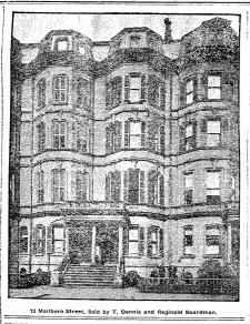 On September 3, 1920, 15 Marlborough was acquired by Gertrude A. (Long) Rich, the wife of Charles Johnson Rich. Their daughter, Phyllis, lived with them. They previously had lived at 33 Bay State Road.