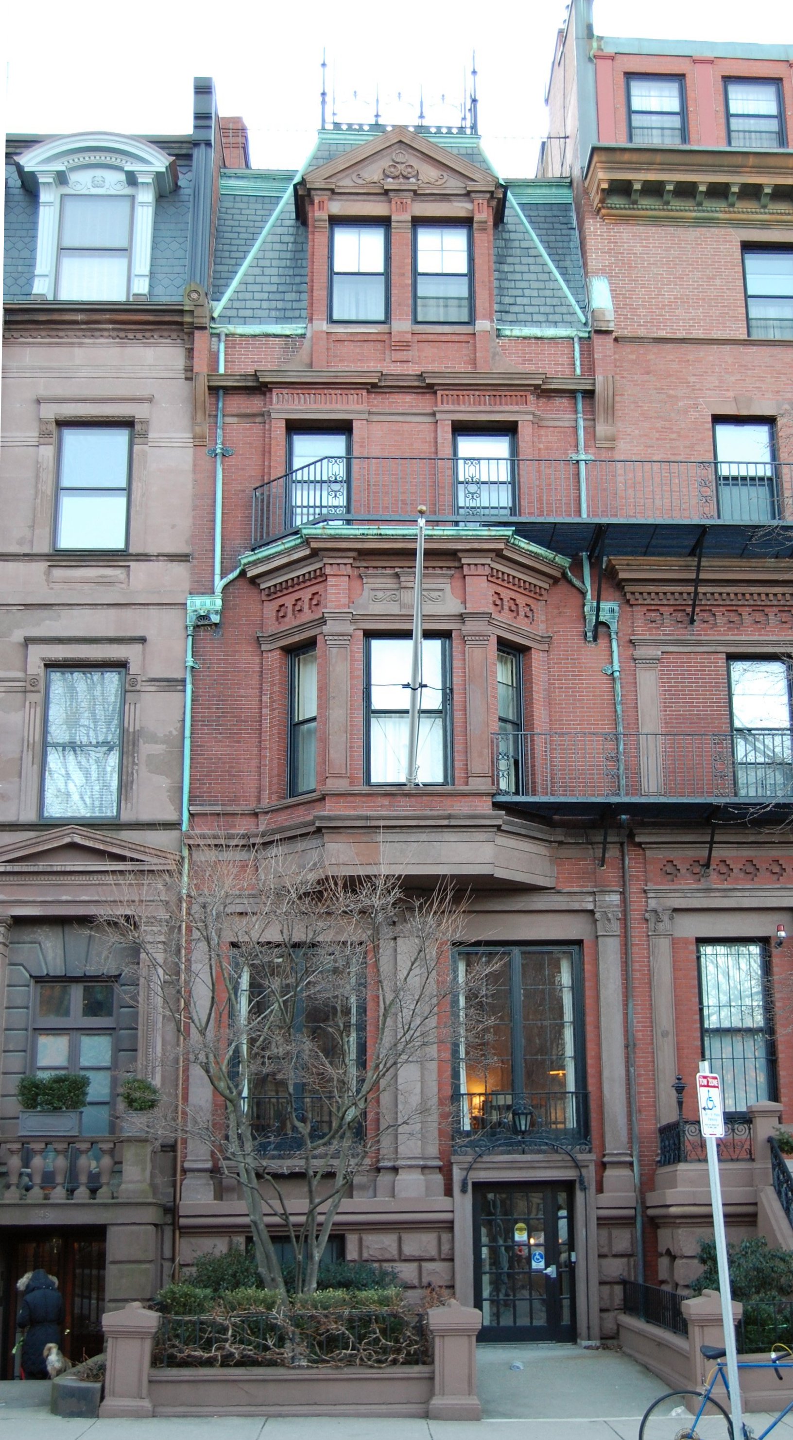 In his memoirs, One Boy’s Boston: 1887-1901, Samuel Eliot Morison (Frank Morison’s nephew) describes his Uncle Frank’s decision to move from Chestnut Street to Commonwealth Avenue: “When Uncle Frank Morison decided to move from unfashionable Chestnut Street to swell Commonwealth Avenue, his son James MacGregor, known as ‘Mac,’ burst into tears, crying ‘There are ten good reasons not to leave Chestnut Street.’ When invited to name them, Mac said, ‘The first is the coasting – and that goes for the other nine!'” (Coasting was sledding, a popular sport on Beacon Hill).