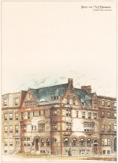 Edwin Bradbury is shown as the owner of 16 Exeter (196 Marlborough) on the original building permit application, dated April 13, 1886. He purchased the land on February 20, 1886, from attorney William Sohier Dexter. It was part of a larger lot running from Marlborough to the alley that William Dexter had purchased on October 20, 1885, from Henry Lee Higginson and Alexander Agassiz, who had purchased it from the Commonwealth of Massachusetts on February 25, 1873.