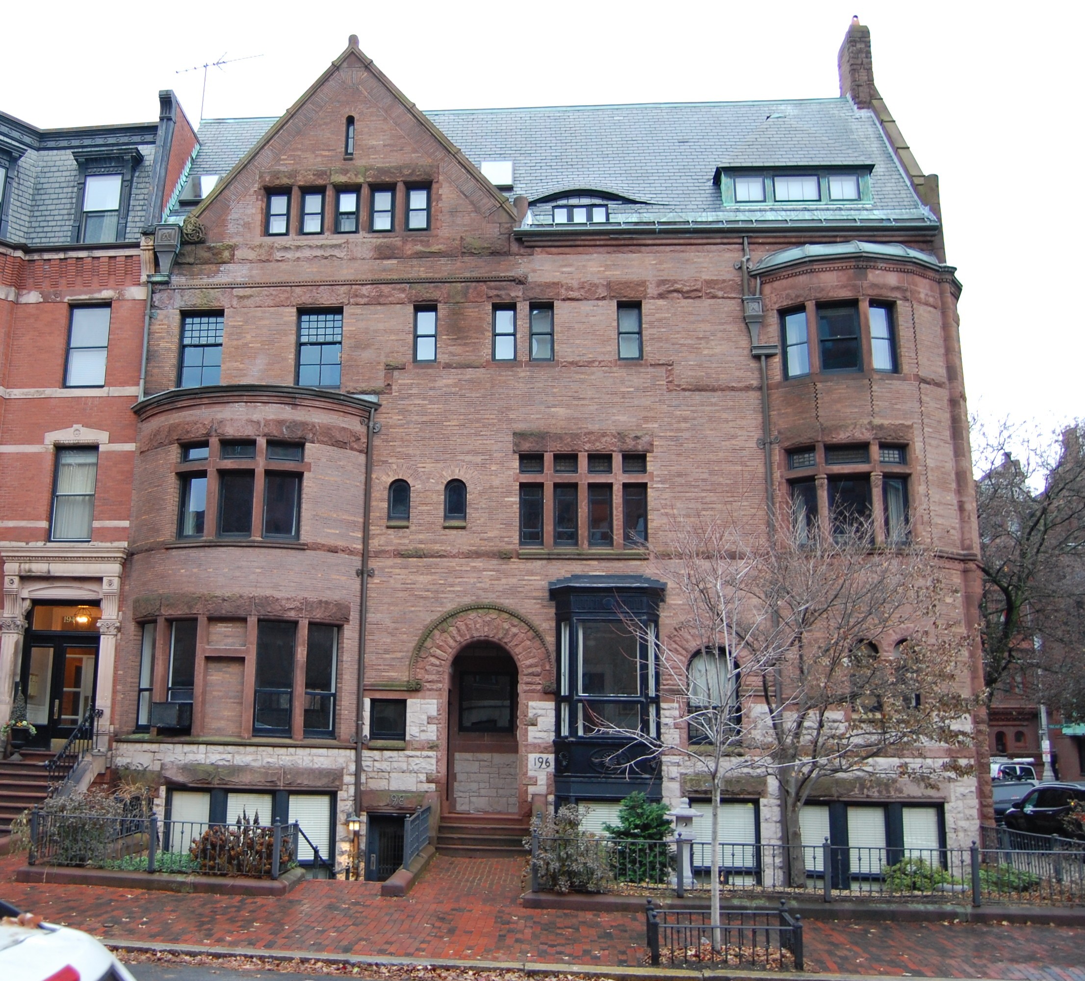 On September 5, 1984, 16 Exeter (196 Marlborough) was purchased from Richard Cox by real estate dealer Charles M. Talanian, as trustee of the 16 Exeter Street Realty Trust. In July of 1984, prior to taking title to the property, Charles Talanian filed for (and subsequently received) permission to build a three story addition in the rear courtyard and to establish the legal occupancy as two offices and four apartments.