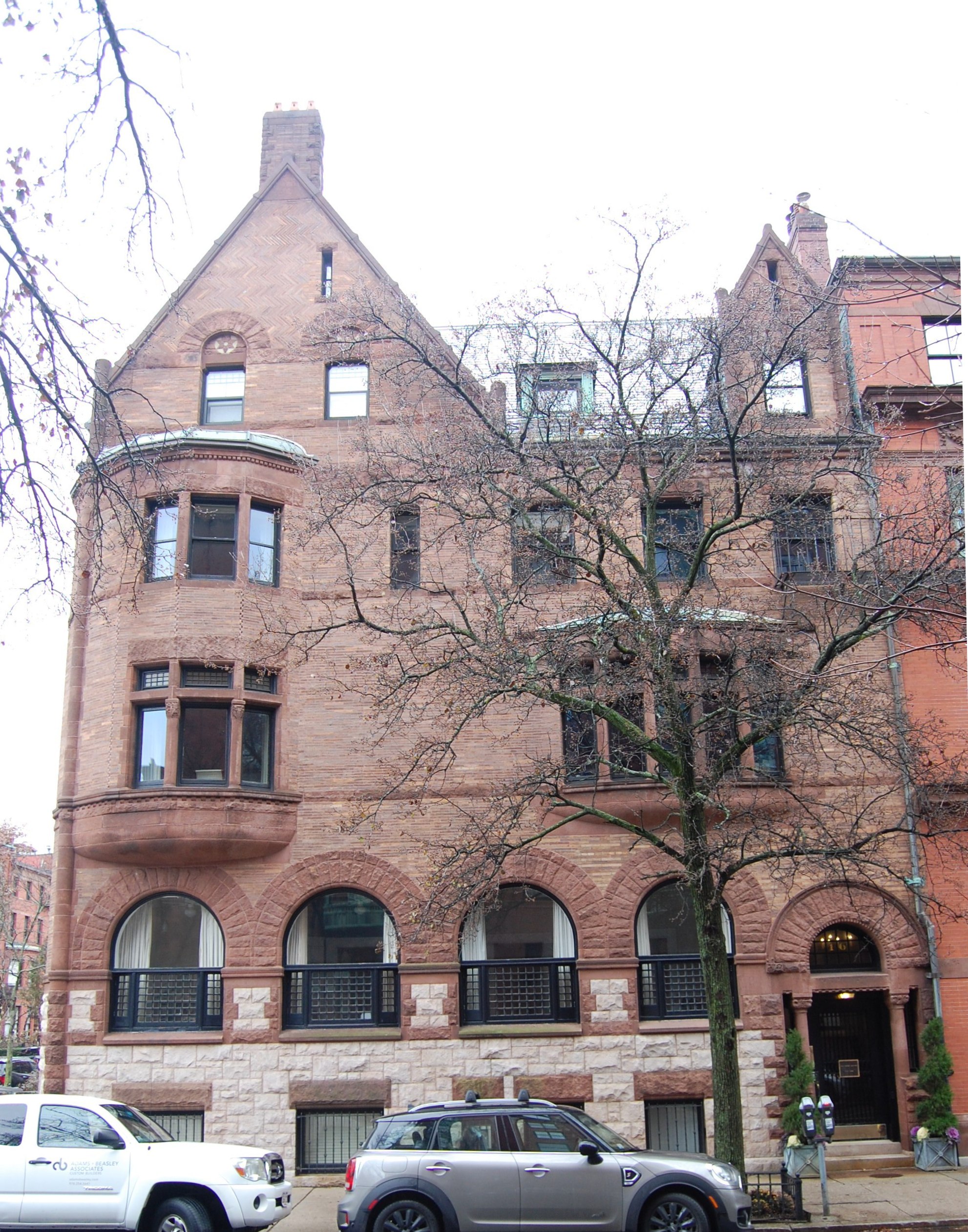 Edwin Bradbury is shown as the owner of 16 Exeter (196 Marlborough) on the original building permit application, dated April 13, 1886. He purchased the land on February 20, 1886, from attorney William Sohier Dexter. It was part of a larger lot running from Marlborough to the alley that William Dexter had purchased on October 20, 1885, from Henry Lee Higginson and Alexander Agassiz, who had purchased it from the Commonwealth of Massachusetts on February 25, 1873.