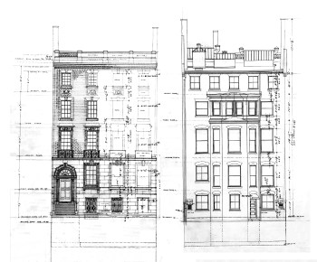 160 Beacon, front and rear elevations, excerpts from drawings by Peabody and Stearns (1902); courtesy of the Boston Public Library Arts Department