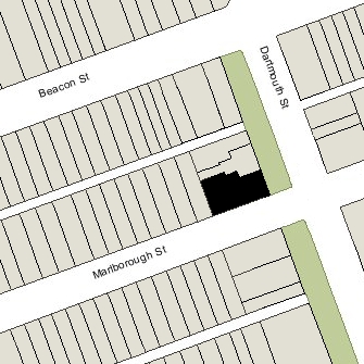 163 Marlborough is located on the NW corner of Marlborough and Dartmouth, with 137 Marlborough (317 Dartmouth) to the east, across Dartmouth), 167 Marlborough to the west, 326 Dartmouth to the north, and 164 Marlborough to the south, across Marlborough.