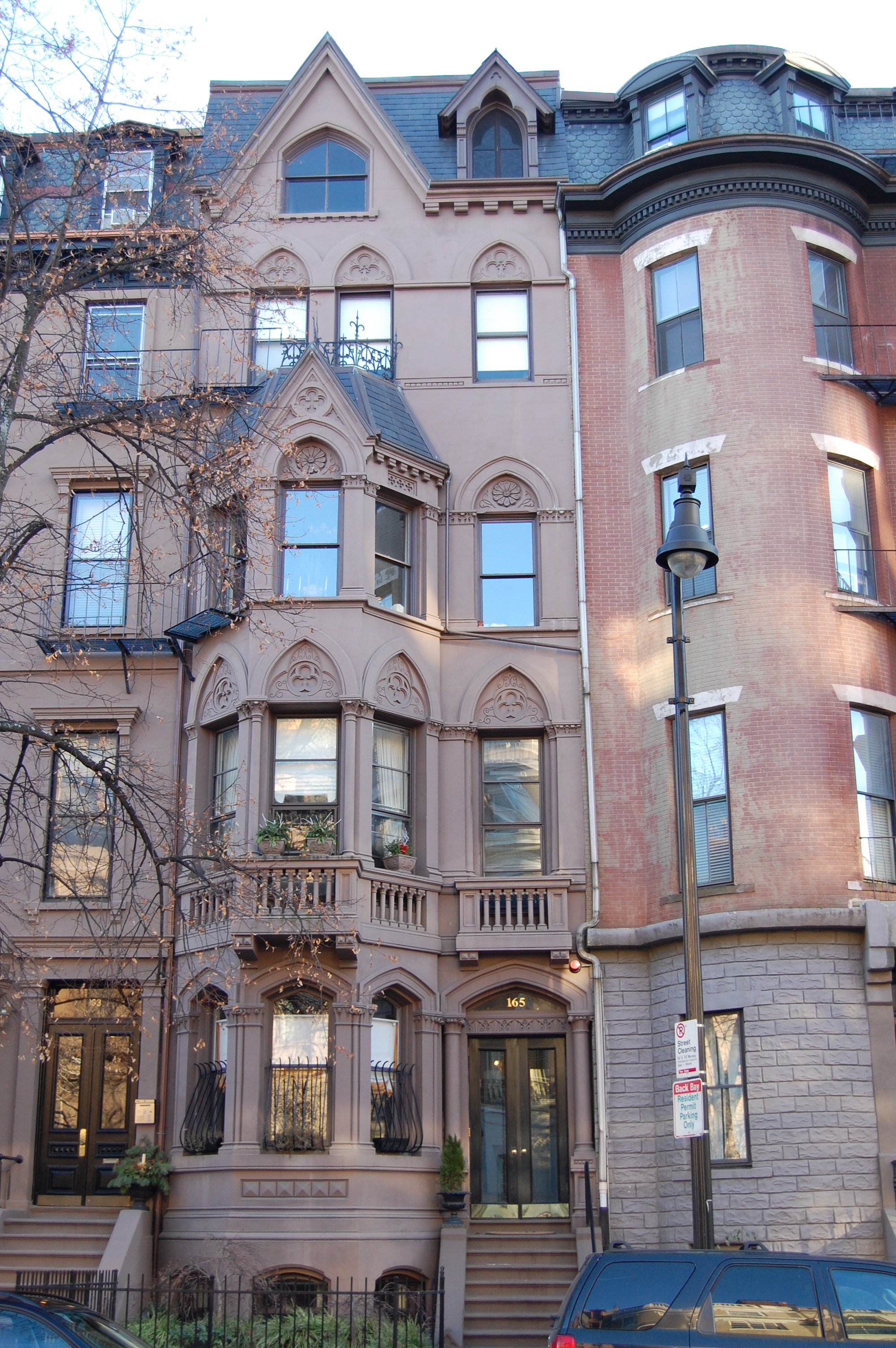 165 Beacon is located on the south side of Beacon, between Berkeley and Clarendon, with 163 Beacon to the east and 167 Beacon to the west.