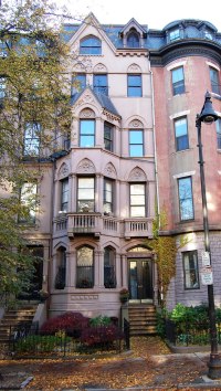 On June 9, 1868, the Boston Herald reported that John Flagler had filed a Notice of Intention to Build at 165 Beacon. Construction started soon thereafter. Neither the Herald article nor Bainbridge Bunting’s Houses of Boston’s Back Bay attribute the house to a specific architect. However, a January 2, 1869, Boston Post article on new buildings in Boston during the previous year describes it as “a four-story brick dwelling, with freestone trimmings, 20×60, by John H. Flagler, costing about $30,000” and indicates that it was designed by architects Cummings and Sears.