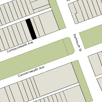165 Commonwealth is located on the north side of Commonwealth, between Dartmouth and Exeter, with 163 Commonwealth to the east and 167 Commonwealth to the west.