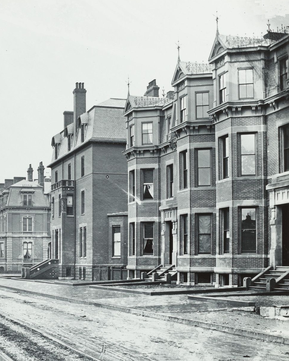 164-172 Marlborough (ca. 1875), detail from a photograph of the south side of Marlborough, looking west; courtesy of Historic New England