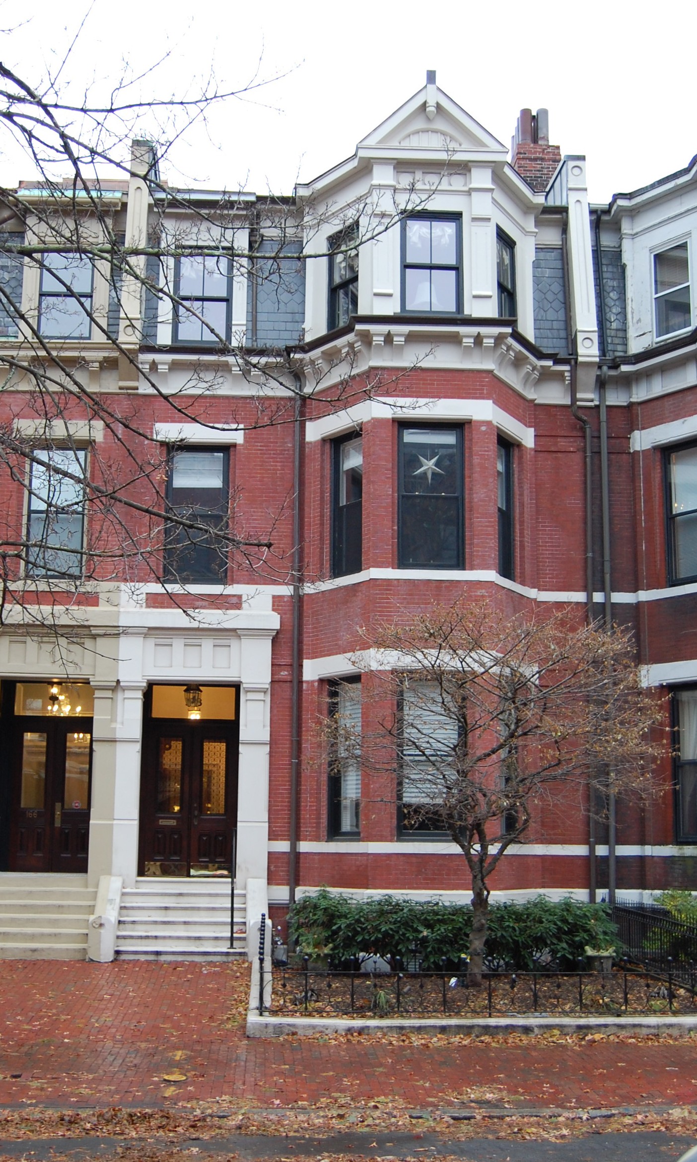 On November 14, 1874, the Boston Globe reported that T. E. and W. H. Stewart, builders, had received a building permit to construct 166-172 Marlborough. Construction probably started soon thereafter.
