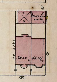 Excerpt from 1887 Sanborn map, v. 2, plate 41, showing 19 Exeter and 197 Commonwealth, with 17 Exeter and the stable behind 197 Commonwealth.