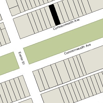 175 Commonwealth is located on the north side of Commonwealth, between Dartmouth and Exeter, with 173 Commonwealth to the east and 177 Commonwealth to the west.