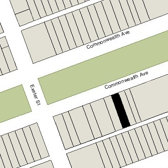 176 Commonwealth is located on the south side of Commonwealth, between Dartmouth and Exeter, with 174 Commonwealth to the east and 178 Commonwealth to the west.