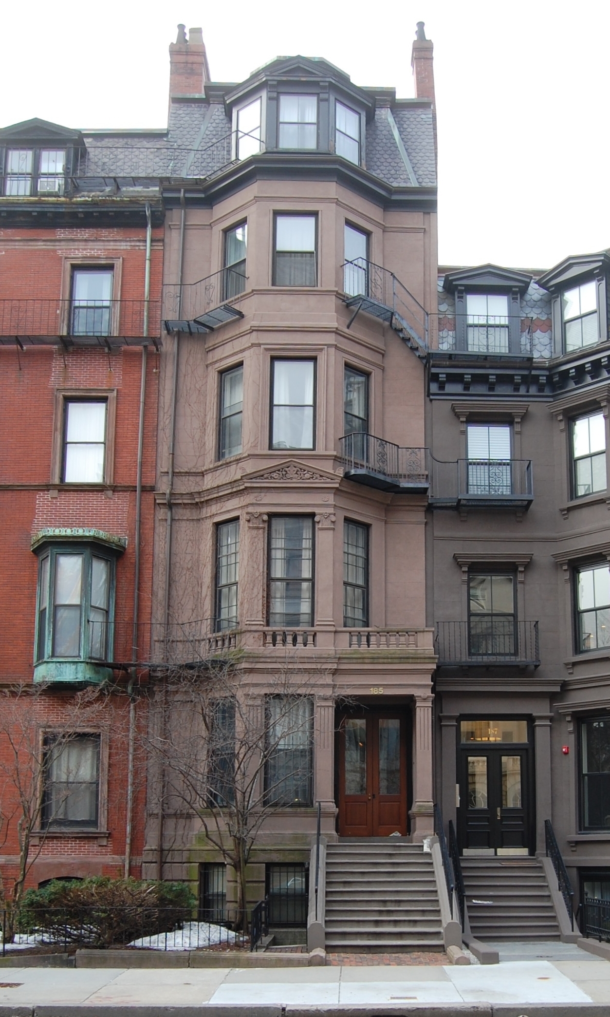 On May 2, 1894, 185 Beacon was acquired from John Anderson by attorney Amory Eliot. He and his wife, Mary (Clark) Eliot, made it their home. They previously had lived in Brookline. They also maintained a home, Wildwood, in Manchester, Massachusetts.