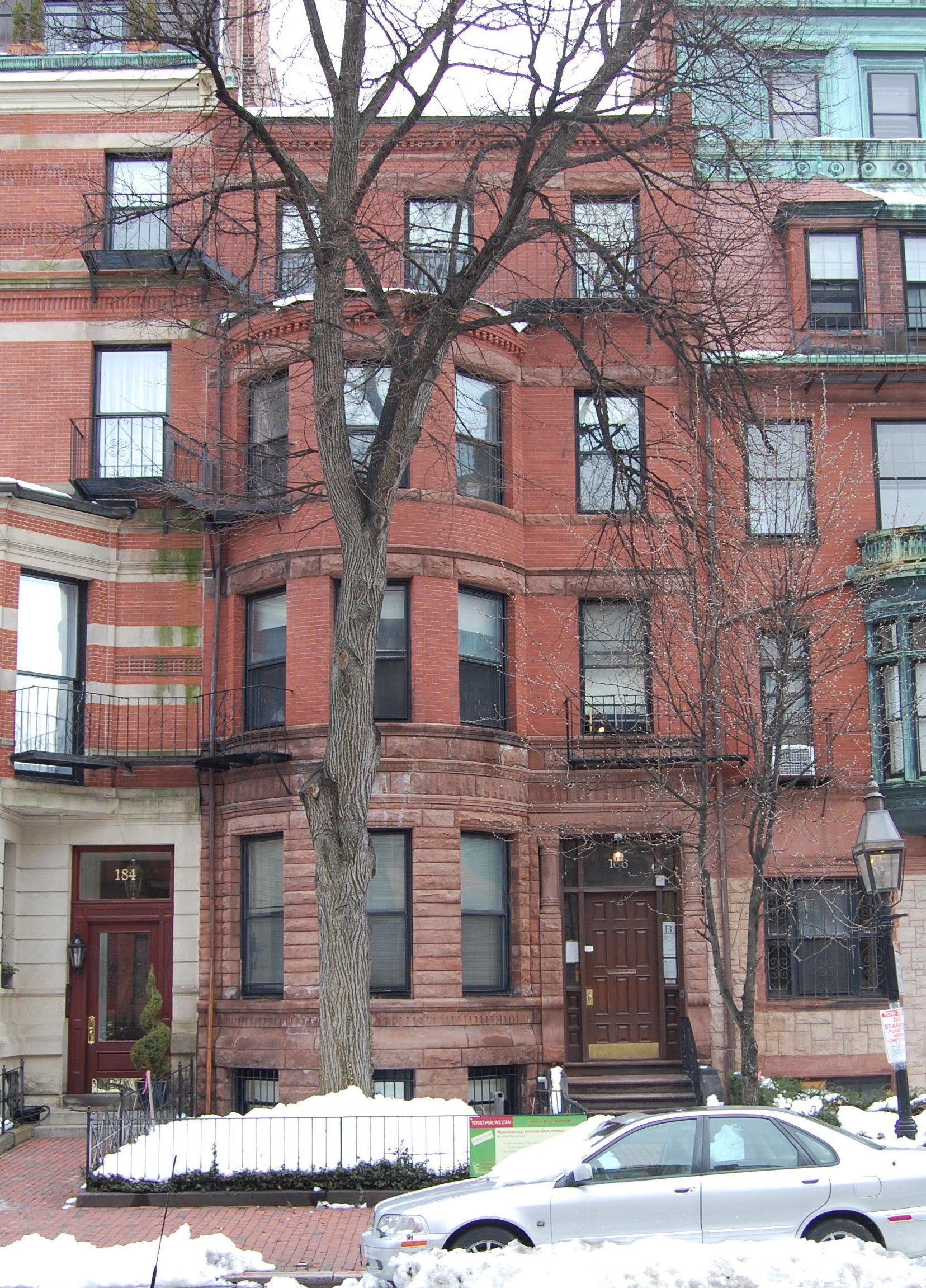 186 Marlborough is located on the south side of Marlborough, between Dartmouth and Exeter, with 184 Marlborough to the east and 188 Marlborough to the west.