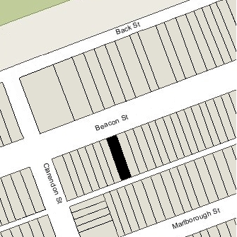 187 Beacon is located on the south side of Beacon, between Berkeley and Clarendon, with 185 Beacon to the east and 189 Beacon to the west.