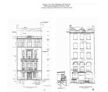 Combined architectural renderings of the front and rear elevations of 189 Marlborough (1906), by architects Winslow and Bigelow; courtesy of the Boston City Archives, City of Boston Blueprints Collection