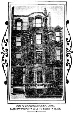 On August 8, 1904, 190 Commonwealth was purchased from Sylvia Winslow by Euretta (Lent) Reed Flagg, the wife of George Flagg.