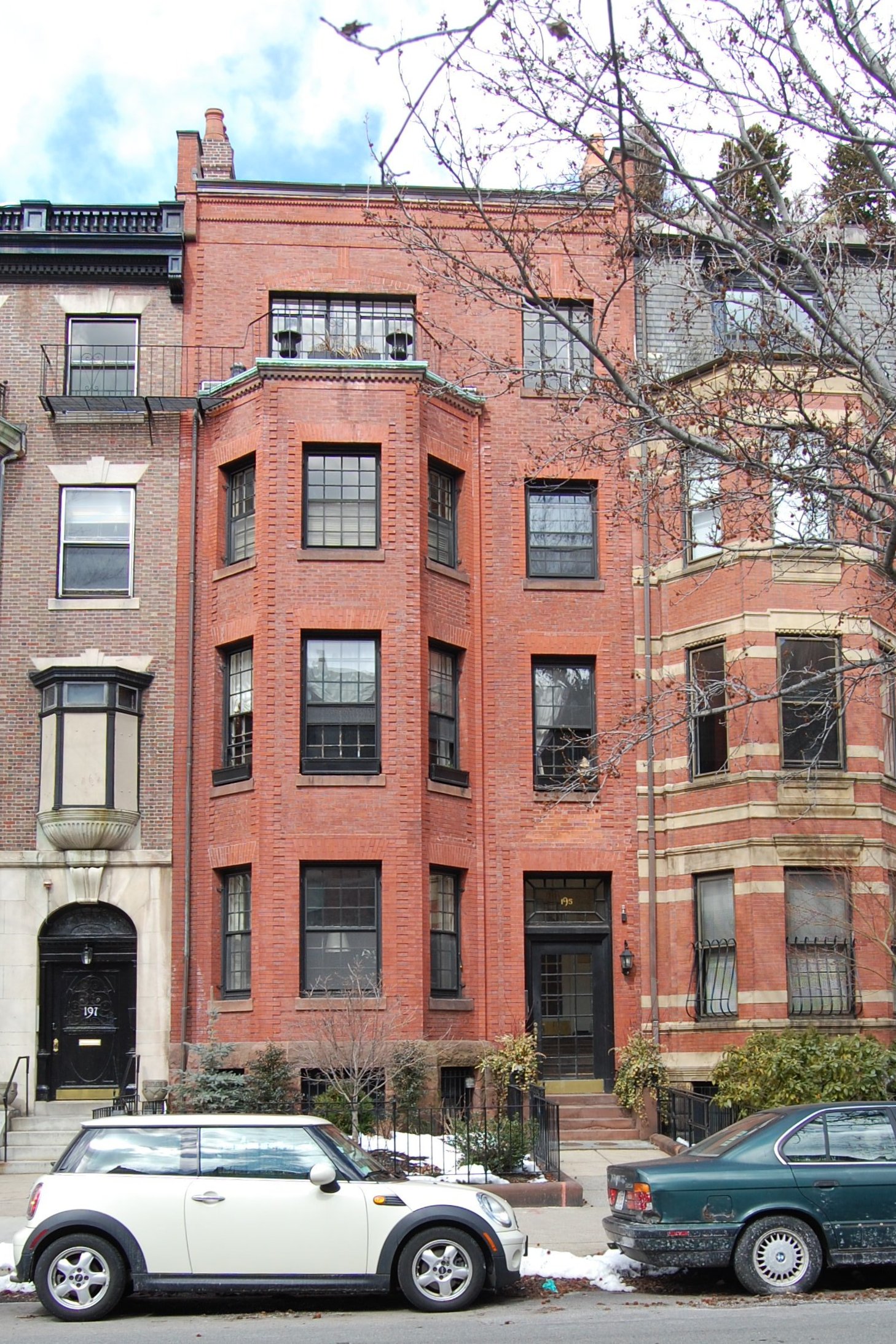 195 Marlborough is located on the north side of Marlborough, between Dartmouth and Exeter, with 193 Marlborough to the east and 197 Marlborough to the west.