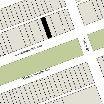 205 Commonwealth is located on the north side of Commonwealth, between Exeter and Fairfield, with 203 Commonwealth to the east and 207 Commonwealth to the west.