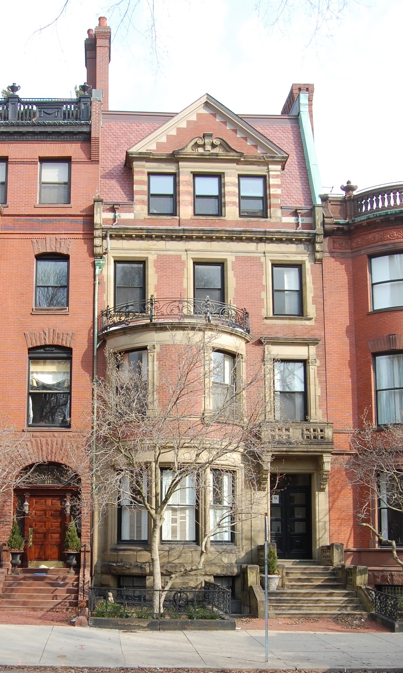 213 Commonwealth was designed by Peabody and Stearns, architects, and built in 1881-1882 by Vinal & Dodge, masons, and McNeil Brothers, carpenters, as the home of wholesale iron merchant Charles Tallman White and his wife, Sarah Brackett (Richardson) White. They previously had lived at 79 Boylston. Charles White is shown as the owner of 213 Commonwealth on the original building permit application, dated September 16, 1881.
