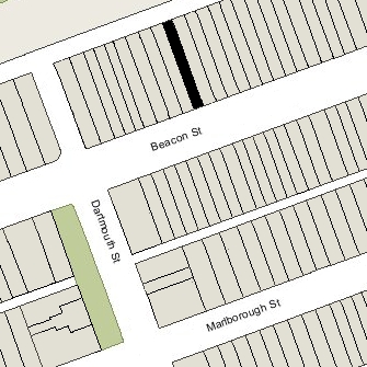 216 Beacon is located on the north side of Beacon, between Clarendon and Dartmouth, with 214 Beacon to the east and 218-220 Beacon to the west.