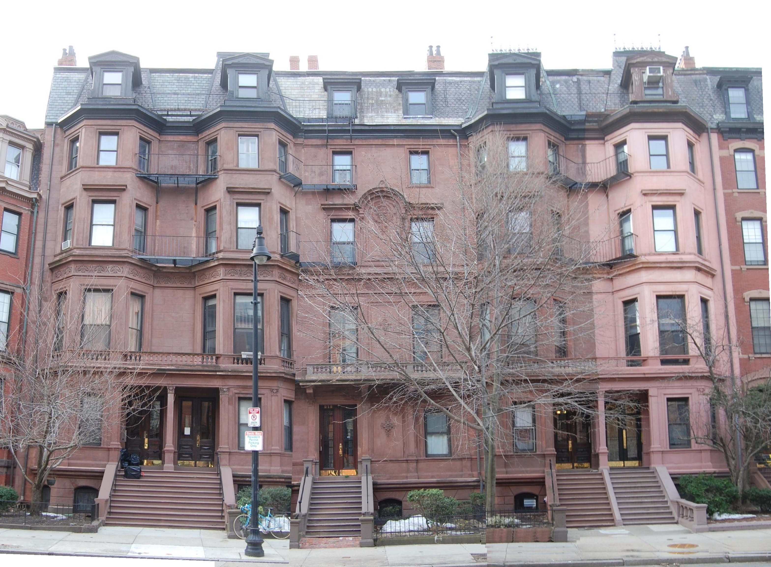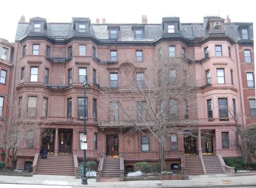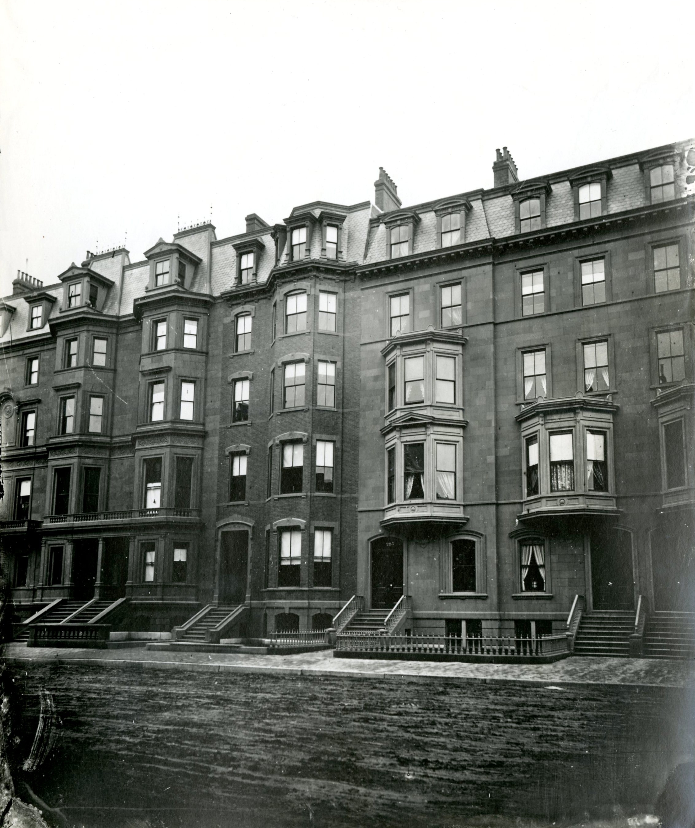 In 1874-1874, Charles Freeland built two additional contiguous houses, 205-209 Beacon, to the east, designed by Peabody and Stearns.