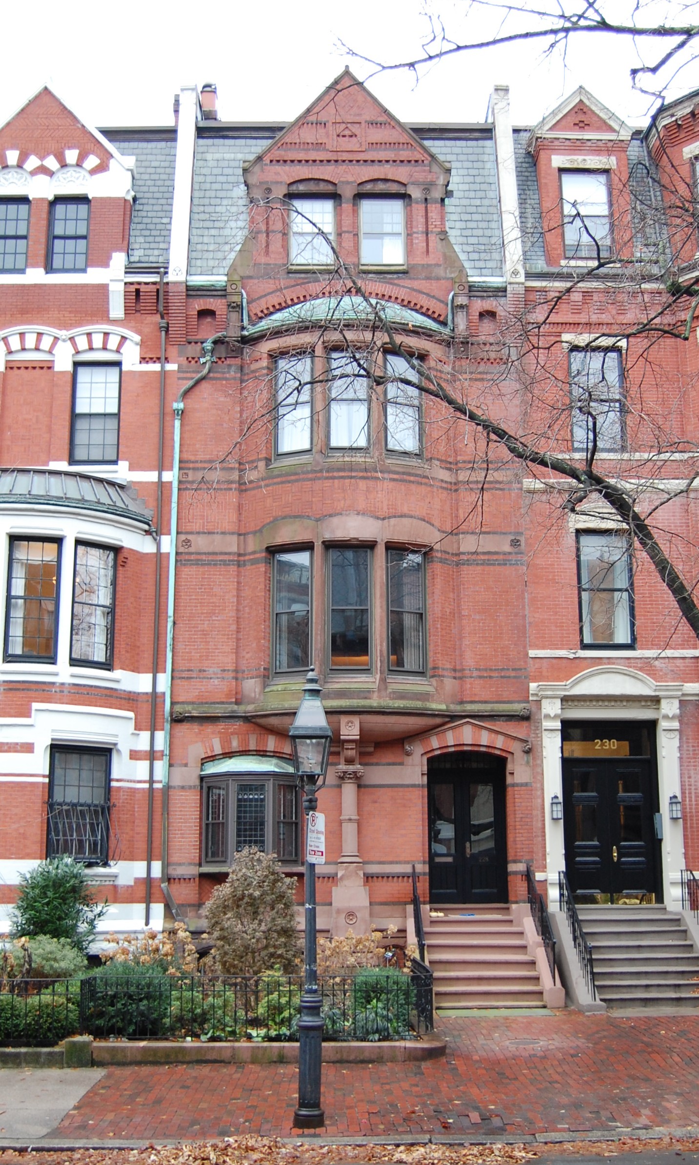 228 Marlborough is located on the south side of Marlborough, between Exeter and Fairfield, with 226 Marlborough to the east and 230 Marlborough to the west.