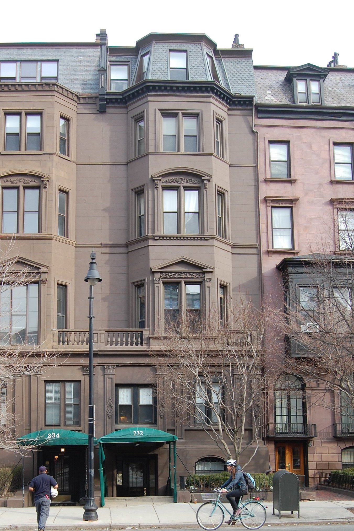 232 Beacon is located on the north side of Beacon, between Clarendon and Dartmouth, with 230 Beacon to the east and 234 Beacon to the west.