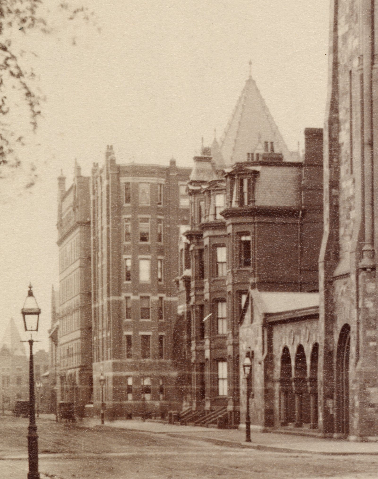 234-236 Clarendon, with 220 Clarendon beyond (ca. 1890), detail from photograph of First Baptist Church by J. W. Taylor; Ryerson and Burnham Archives, The Art Institute of Chicago (Digital file #43924)