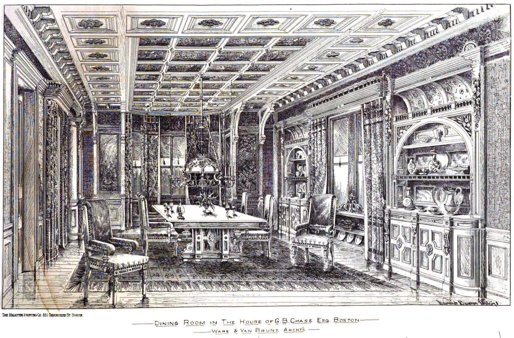 The original building permit applications for 232-234 Beacon have not been located and Bainbridge Bunting’s Houses of Boston’s Back Bay does not attribute the houses to a specific architect. However, on March 8, 1879, the American Architect and Building News published a drawing of the dining room at 234 Beacon and indicated the firm of Ware and Van Brunt as the architects. Although the reference may have been meant to apply only to the design of the dining room, it appears likely that the firm designed the house and its companion at 232 Beacon.