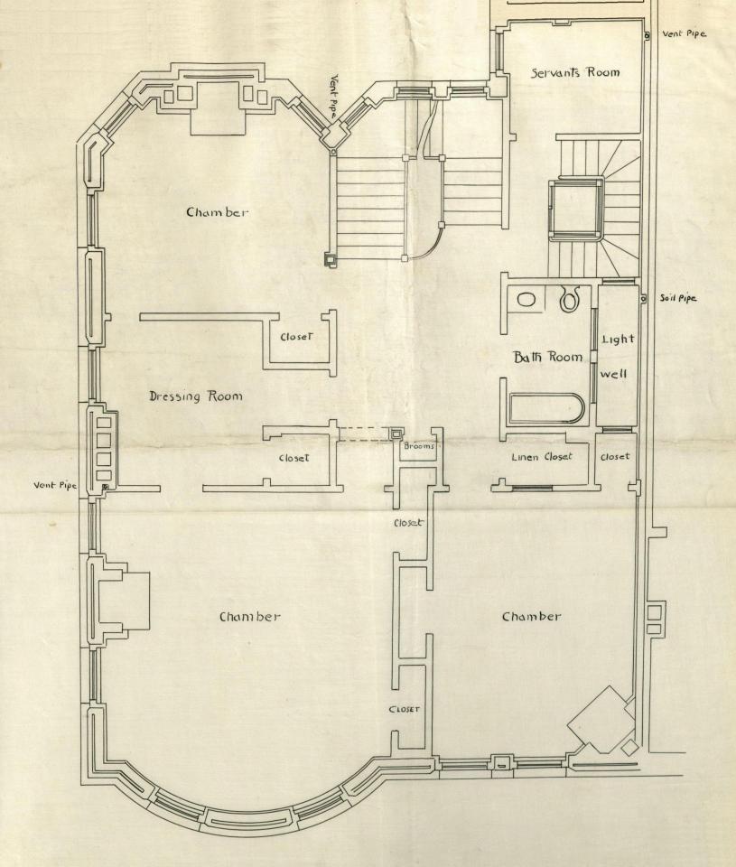 ChgE 024 – Floor Plan (1892) ← Previous Next → Floor plan of 24 Charlesgate East (probably second floor), bound with the final building inspection report , 10Oct1892 (v. 47, p. 42); courtesy of the Boston Public Library Arts Department