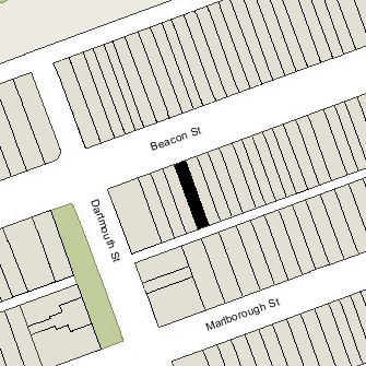 245 Beacon is located on the south side of Beacon, between Clarendon and Dartmouth, with 243 Beacon to the east and 247 Beacon to the west.
