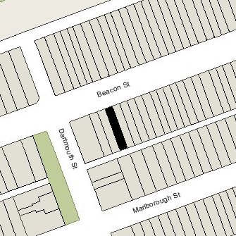 247 Beacon is located on the south side of Beacon, between Clarendon and Dartmouth, with 245 Beacon to the east and 249 Beacon to the west.