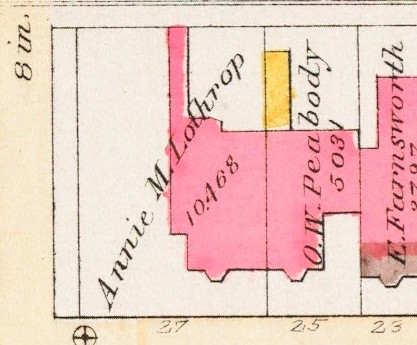 In the early 1890s, probably in 1890-1891, the Peabodys remodeled 25 Commonwealth, extending the eastern half of the façade so that it would be on the same plane as the western half, with an entrance at street level (the ownership of 23 Commonwealth had changed and the windows in its western wall therefore no longer were protected and could be covered by the new construction at 25 Commonwealth). A comparison of the 1890 and 1895 Bromley maps illustrates this change.