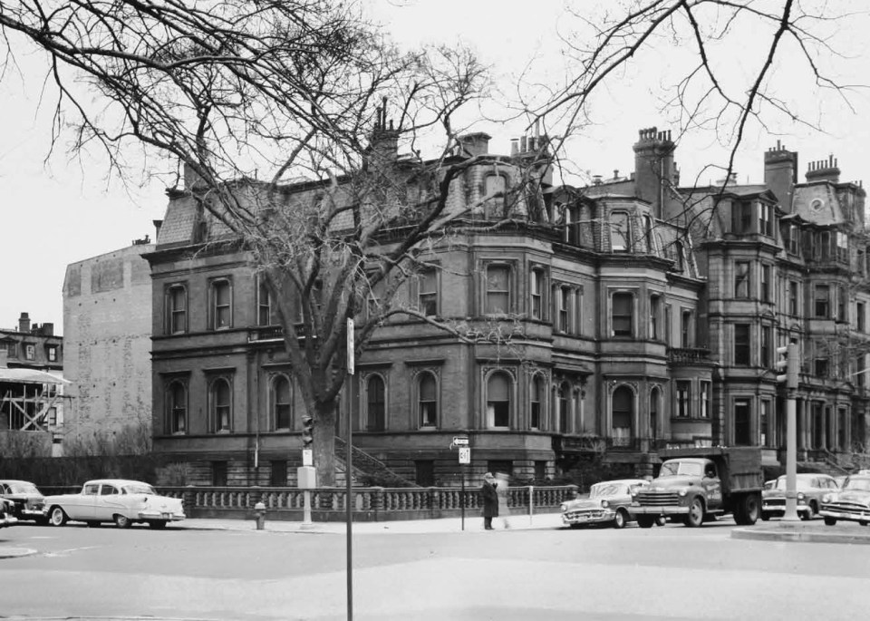 25-27 Commonwealth (ca. 1954-1959), with First Lutheran Church under construction; detail of photograph from the Kepes-Lynch Photograph Collection; copyright Massachusetts Institute of Technology and licensed under the Creative Commons Attribution/Non-Commercial license