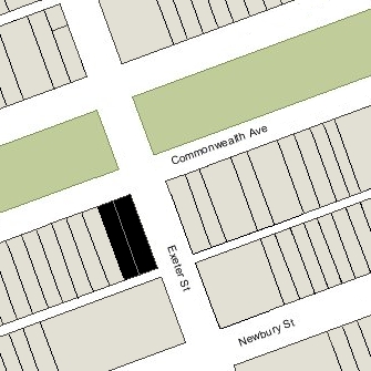 25 Exeter, with 190-192 Commonwealth to the east; (ca. 1885), detail from photograph by John P. Soule; courtesy of the Boston Athenaeum