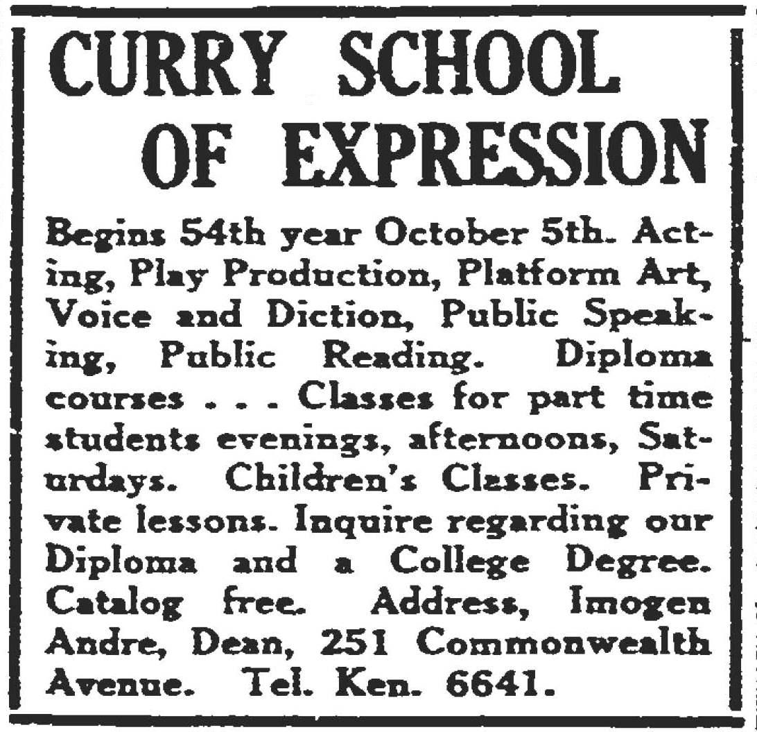 On August 2, 1932, 251 Commonwealth was acquired from S. Clifford Speed by Miss Frances Isabella Fagan. She was a teacher at the Curry School of Expression at 12 Huntington and took title to the property on behalf of the school.