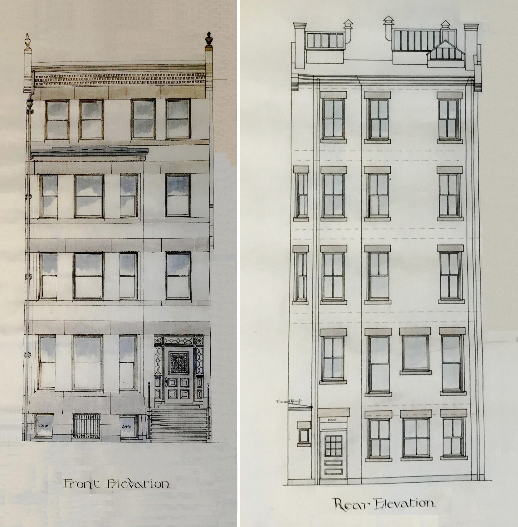 251 Marlborough, front and rear elevations, from drawings by Peabody and Stearns (1878); courtesy of the Boston Public Library Arts Department