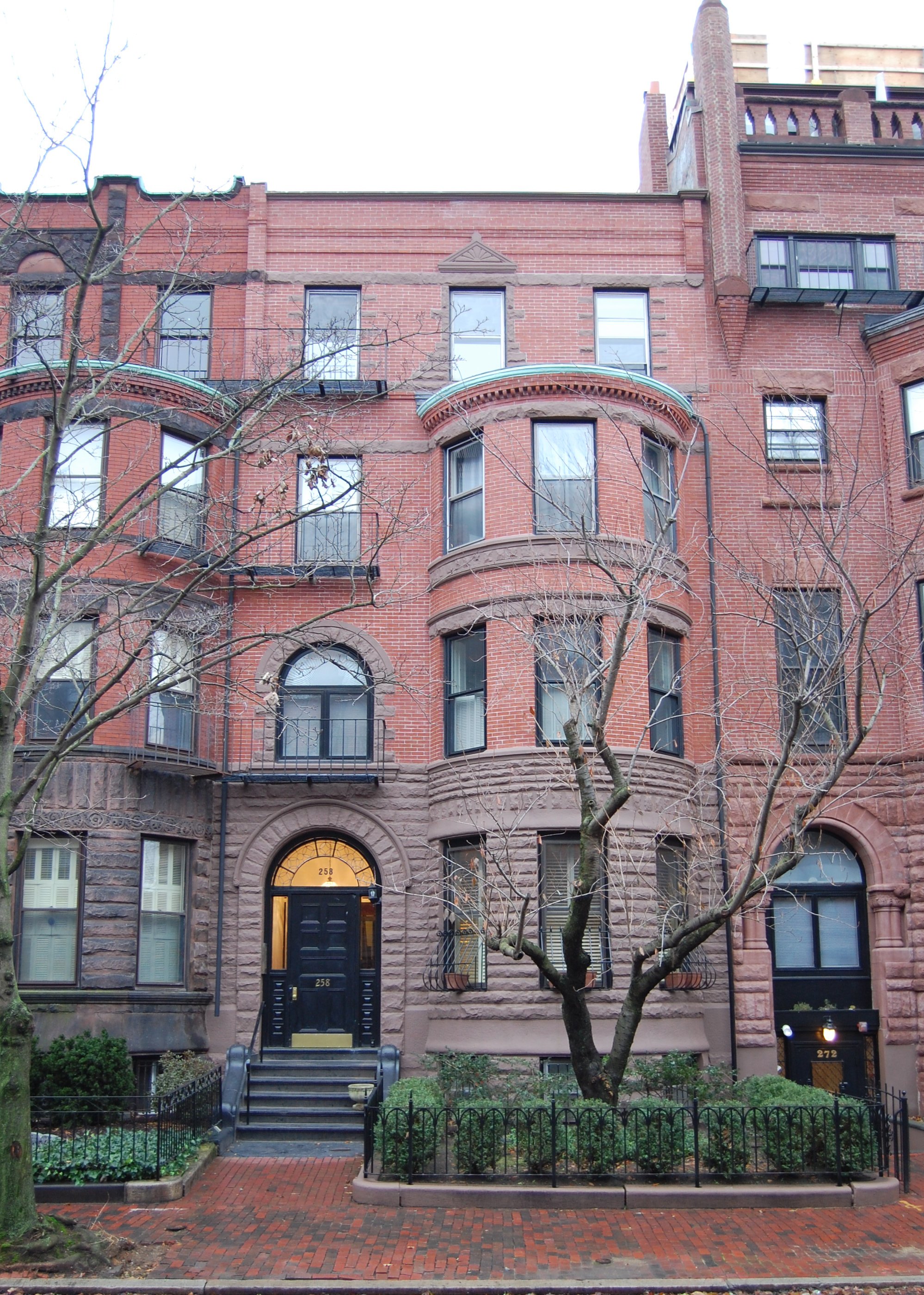 258 Marlborough is located on the south side of Marlborough, between Exeter and Fairfield, with 256 Marlborough to the east and 272 Marlborough to the west.