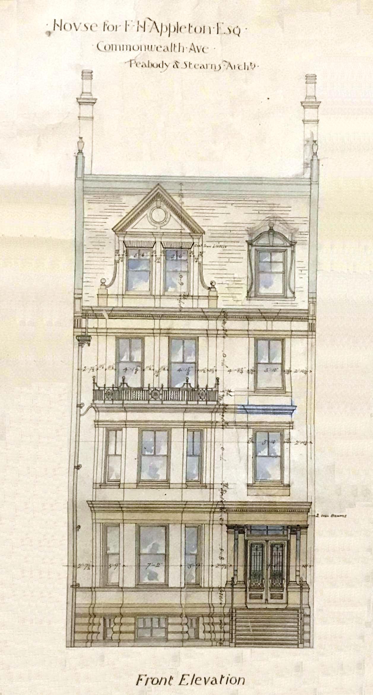 265 Commonwealth, front elevation, excerpt from drawings by Peabody and Stearns (1880); courtesy of the Boston Public Library Arts Department